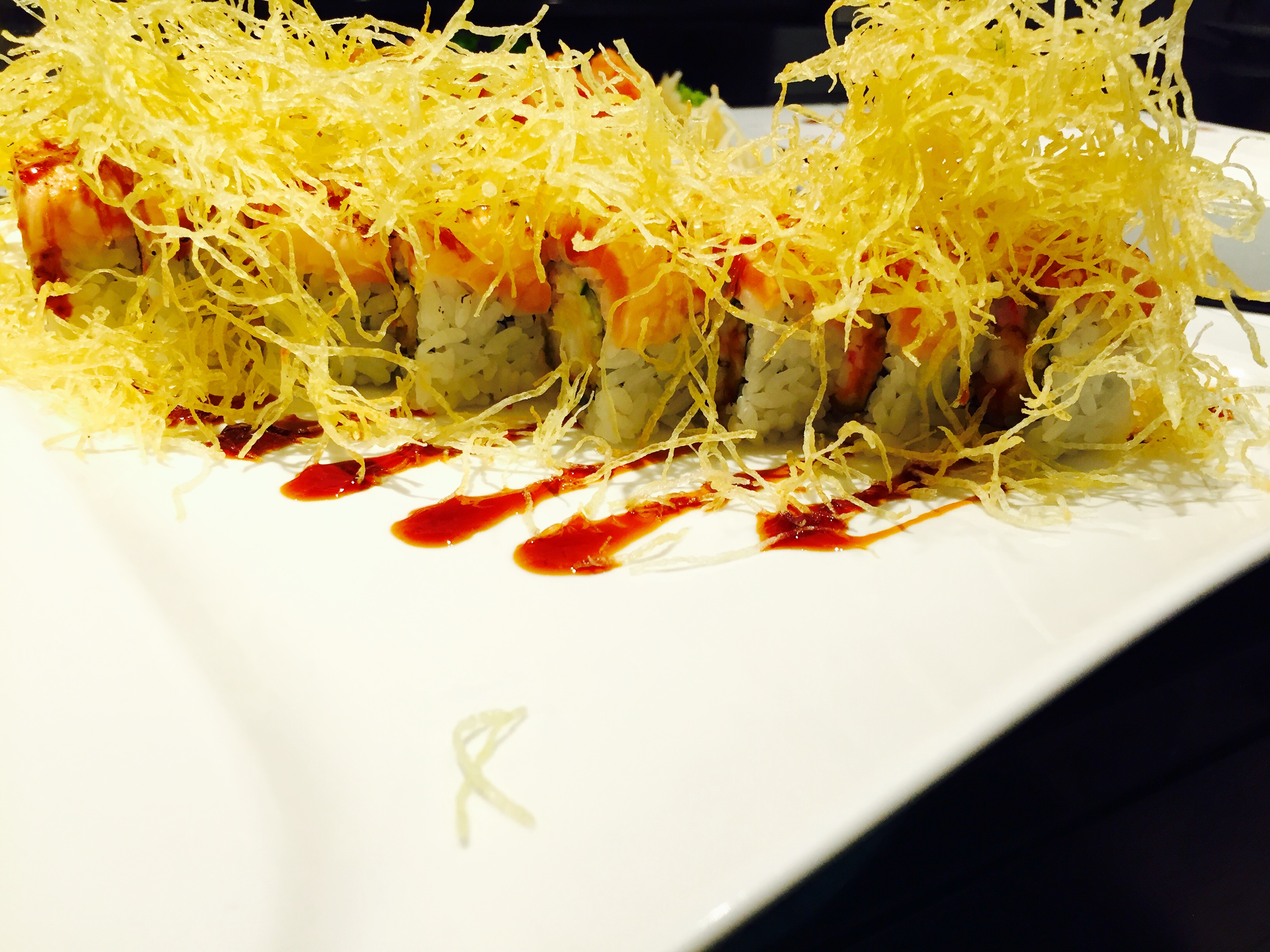 Shinto Chips Roll: Roll tempura di gambero, salmone scottato e sfoglia di patate