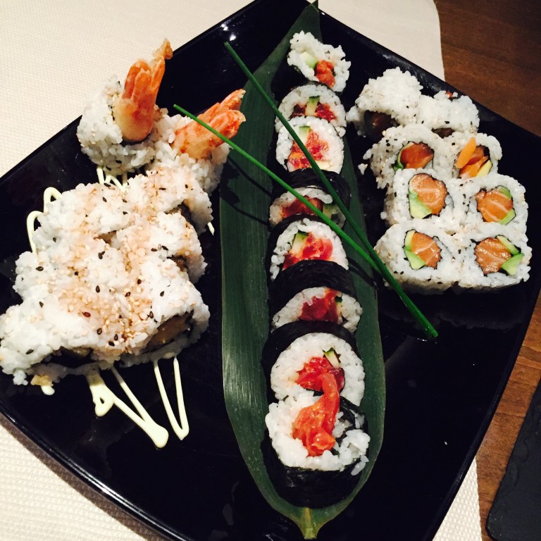 Menu: Uramaki ebiten, sushi rolls con tonno piccante e sushi rolls con salmone e avocado…(#2/3/4)