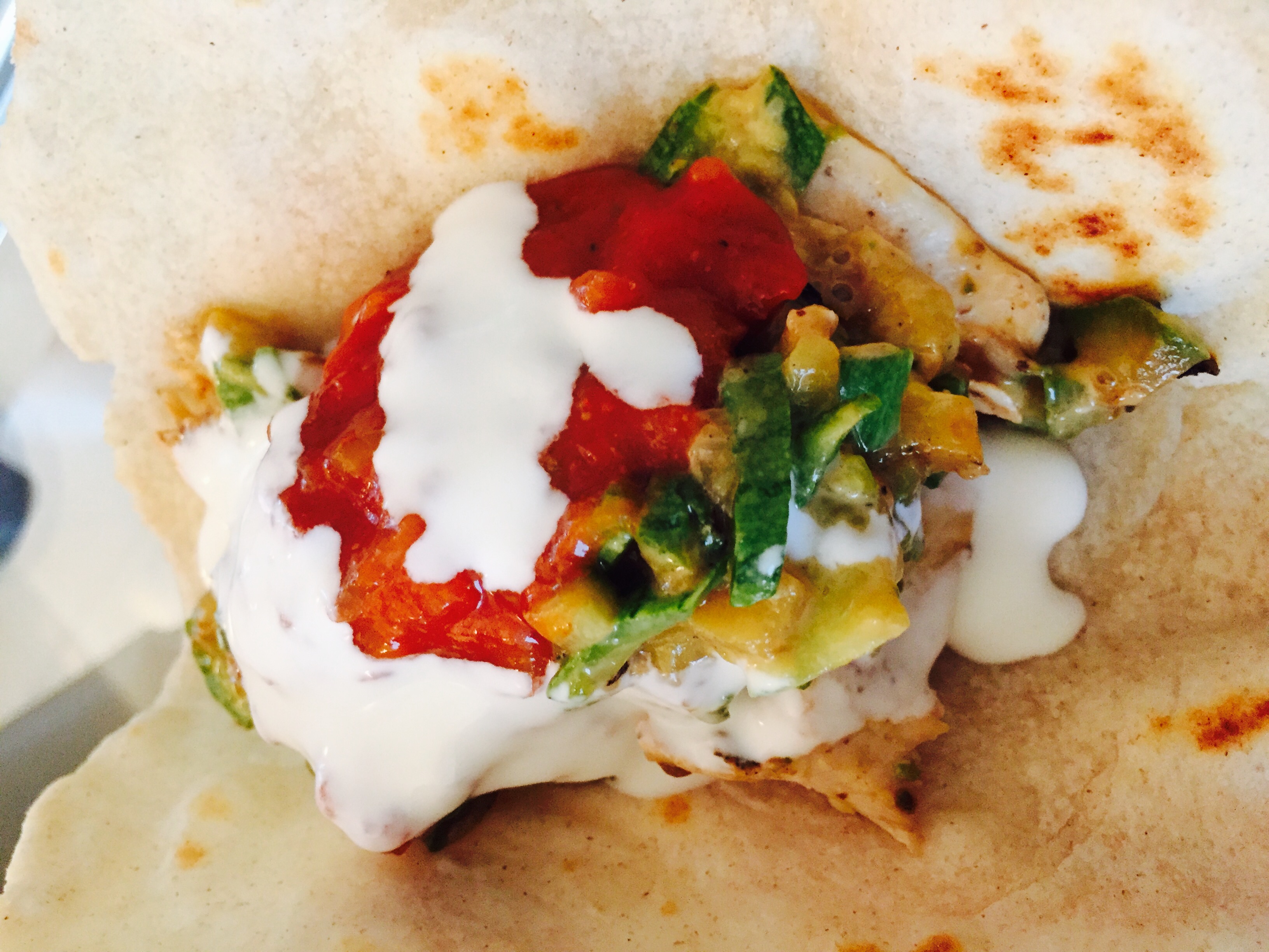 Preparate delle piadine fatte in casa, aggiungete tutti gli ingredienti e aggiungete delle salse a vostro piacimento… consiglio di far in casa la panna acida, servono solamente tre ingredienti e i prodotti fatti in casa hanno una marcia in piĂą…