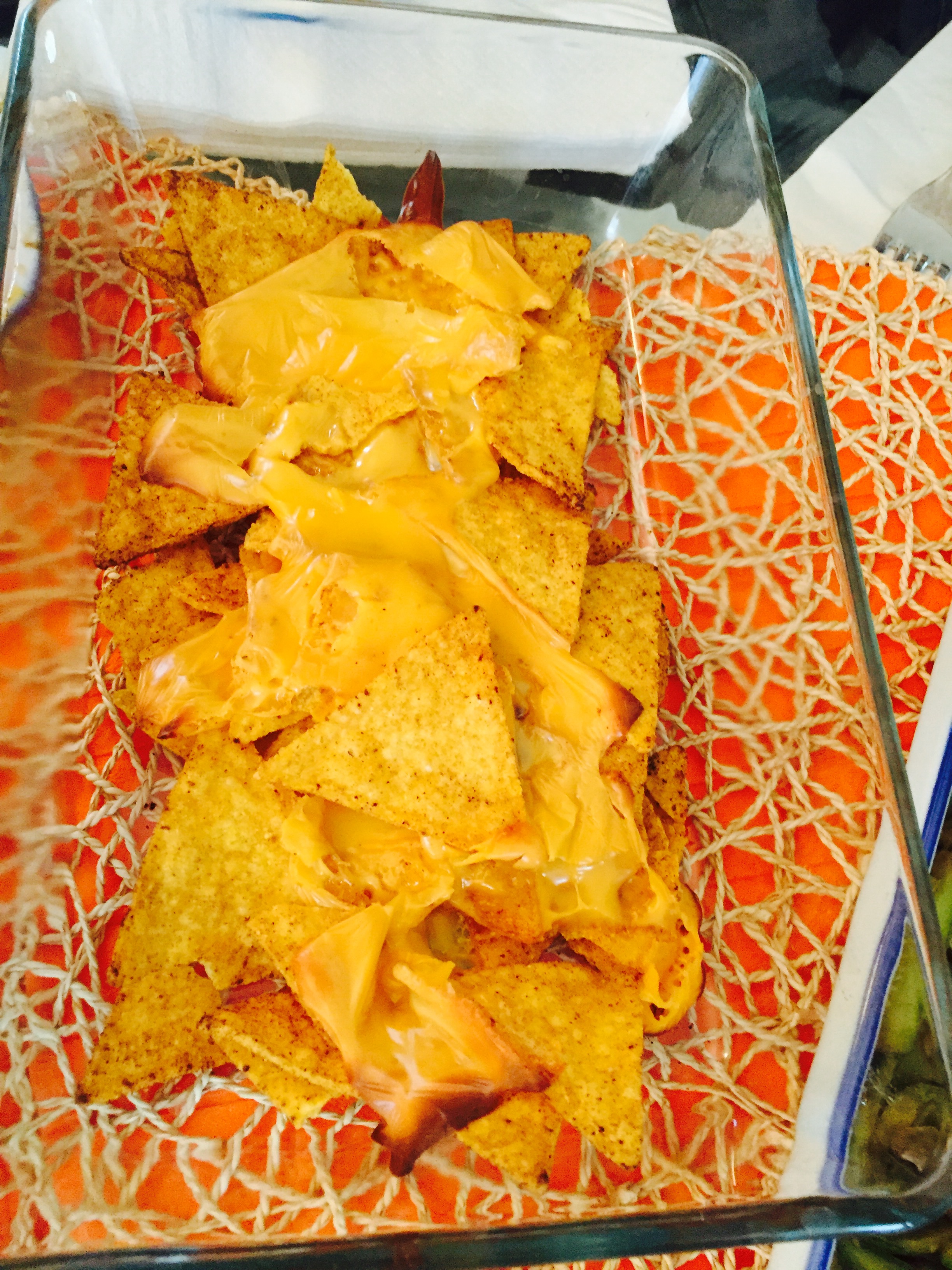 Iniziate con dei nachos e fate sciogliere del formaggio cheddar…