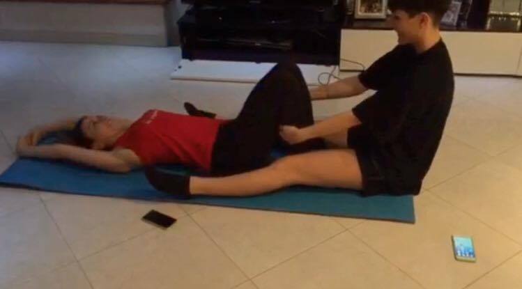 Checkout this video… it will show you a new exercise in which one person is laying down with its knees bend and the second person is sitting in front and it needs to hold her legs… the person laying down Ā needs to get up without putting her hands on the floor…