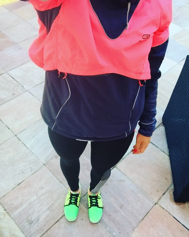 Since the weather is still uncertain I decided to wear my K-way and obviously my super light Nike shoes…