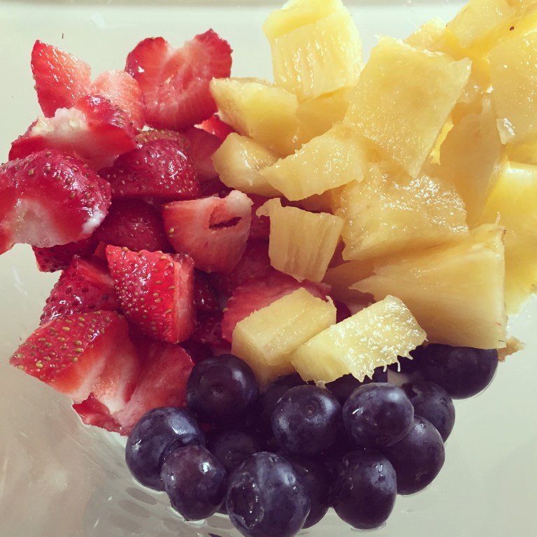 Here is my fantastic colorful breakfast with strawberries, pineapple and blueberries…
