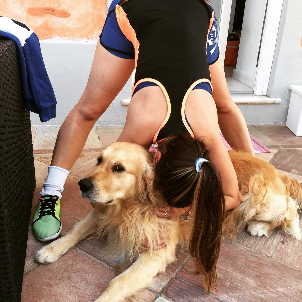 My dog takes always part in my stretching and this is good because I don’t like to do it alone…
