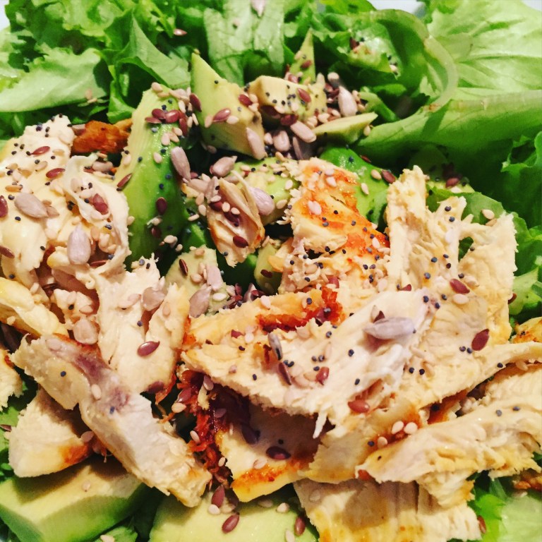 Salad with chicken, avocado and seeds…