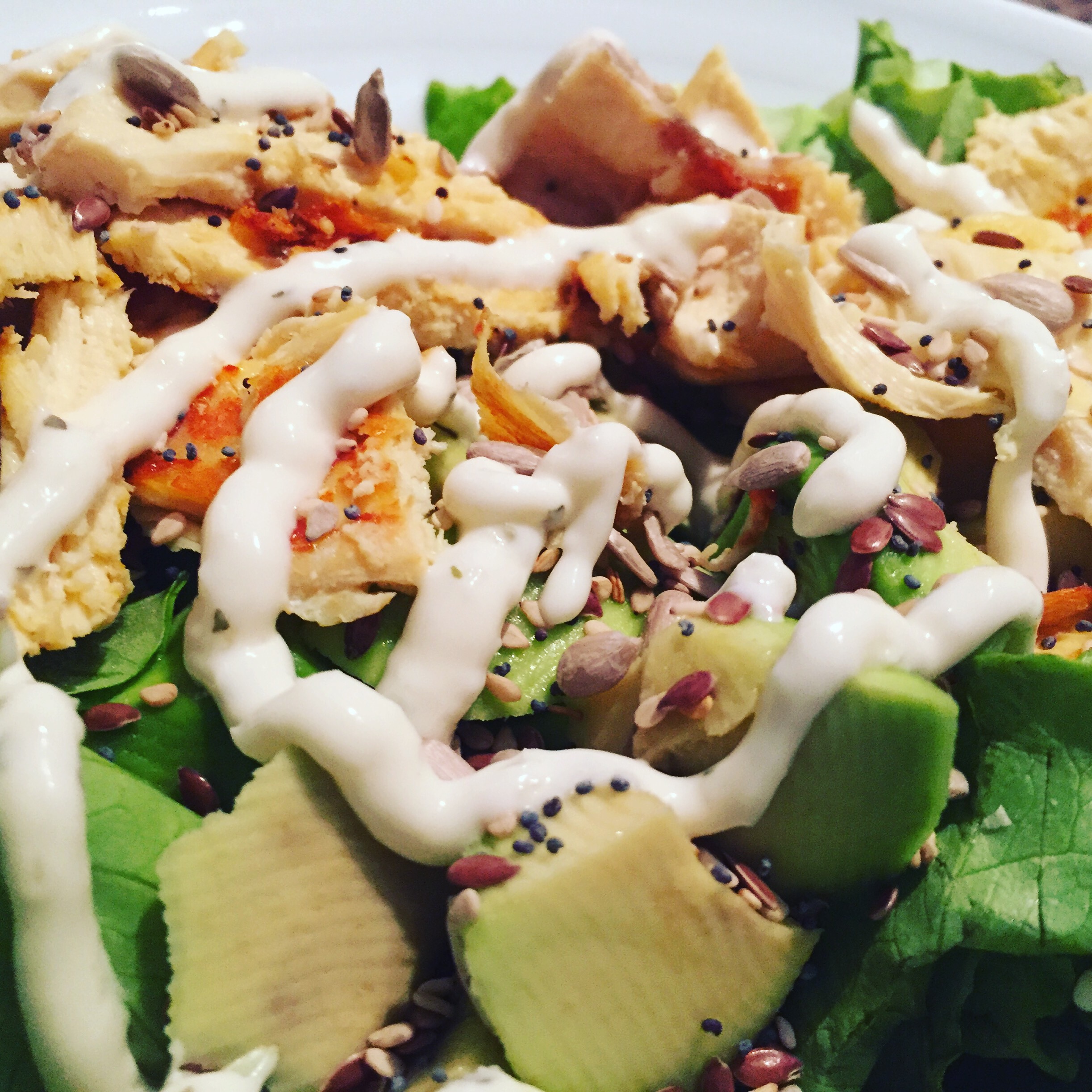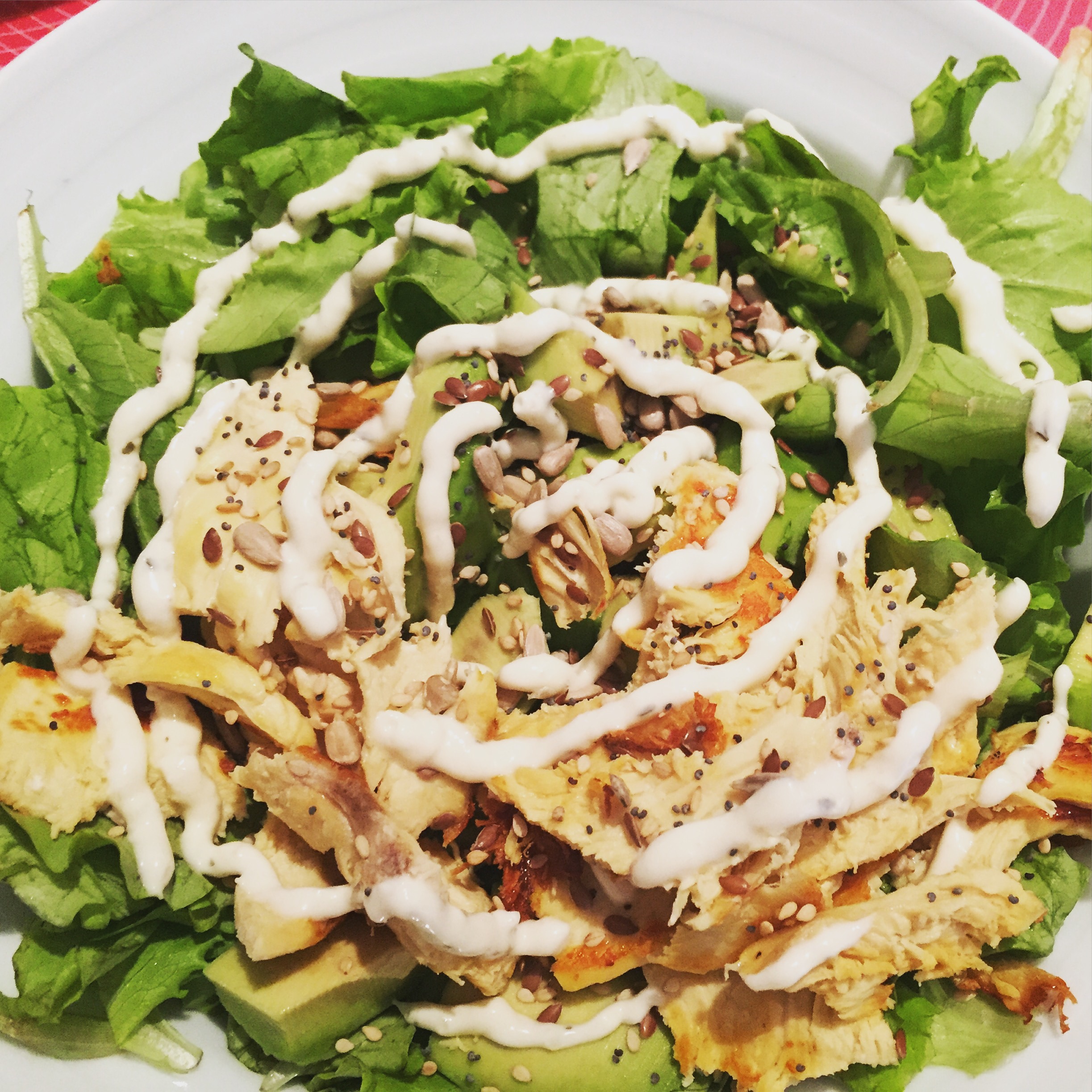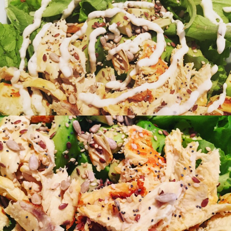 Salad with chicken, avocado and seeds…