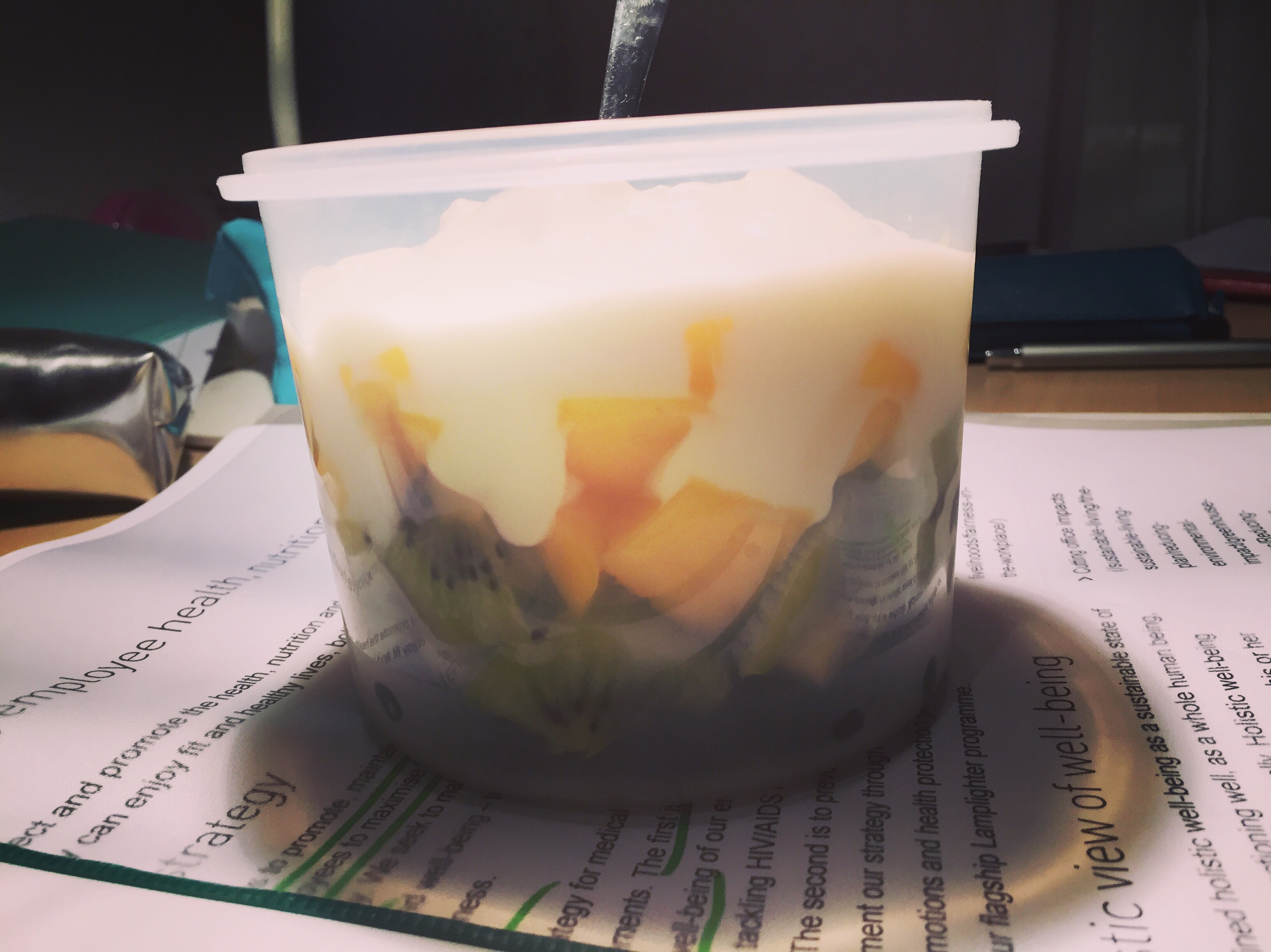 This morning I decided to put my fruit inside a container and bring it with me so that I could eat it while I study…
