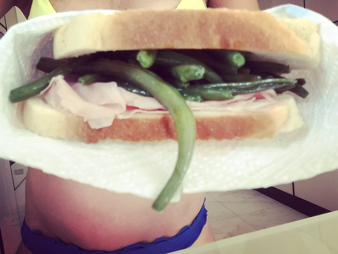 I had some green beans from the dinner, so I decided to add them in my sandwich together with some ham…