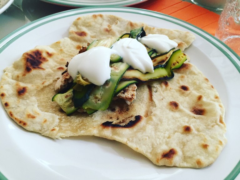 I decided to prepare my homemade wrap with chicken breast, grilled zucchini and homemade sour cream…