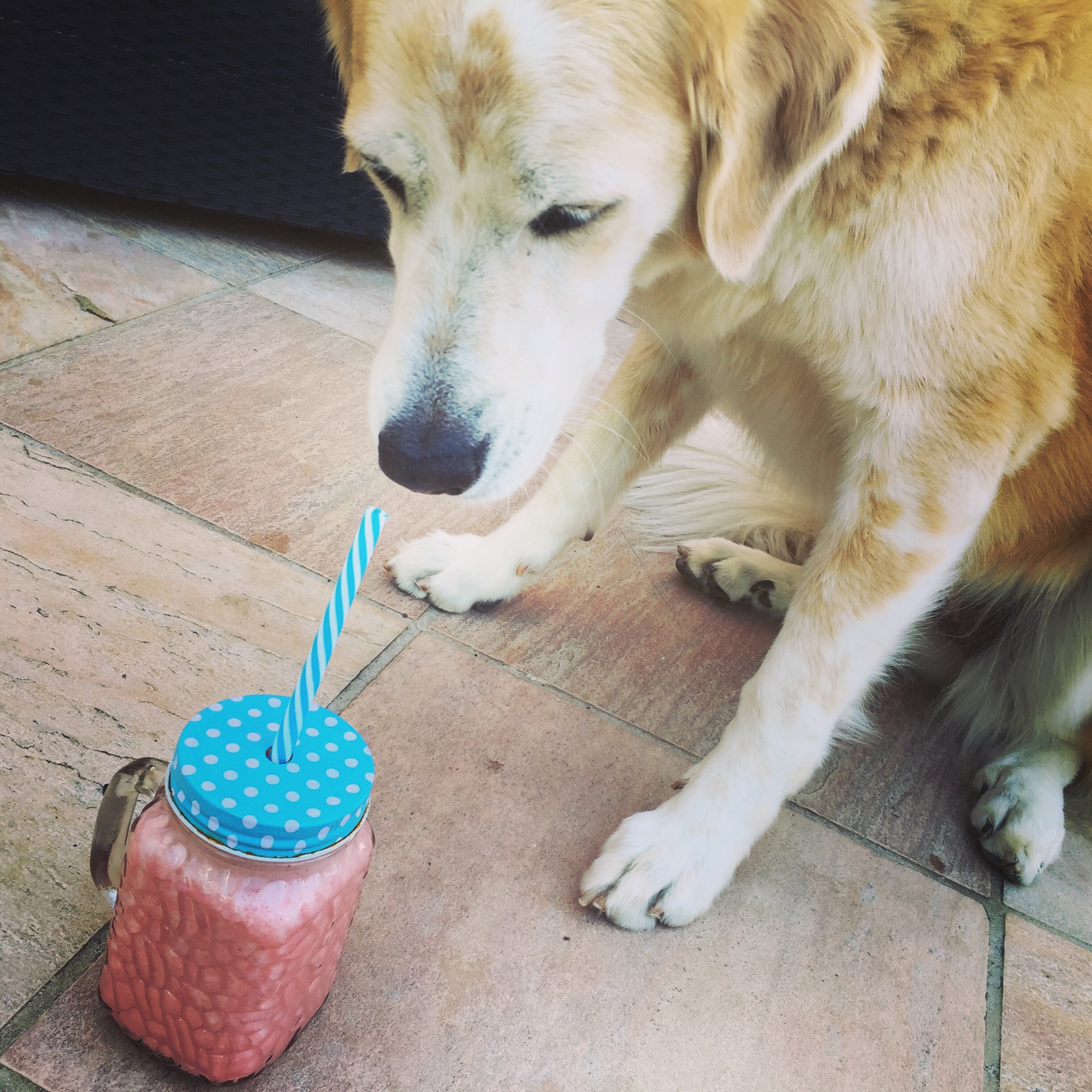 While I was having breakfast my dogs followed me and guess who will drink the smoothie?