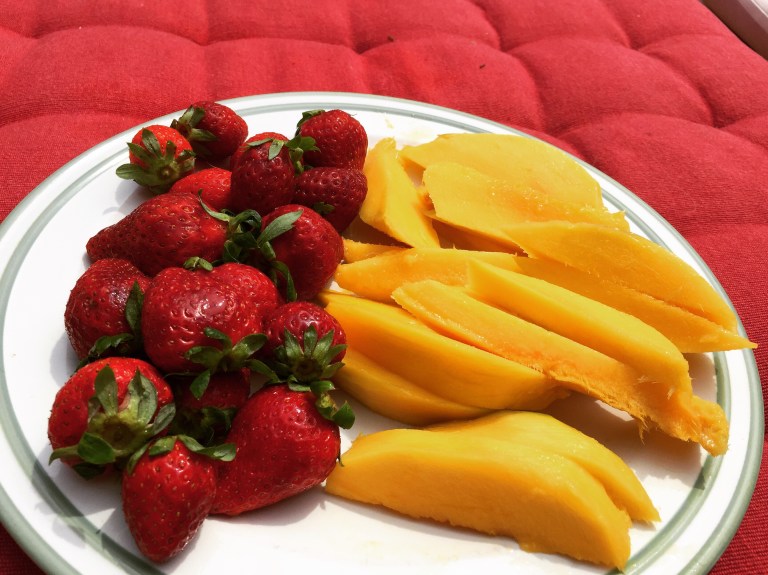 Cut some fruit and enjoy eating it at the beach, pool wherever you are…
