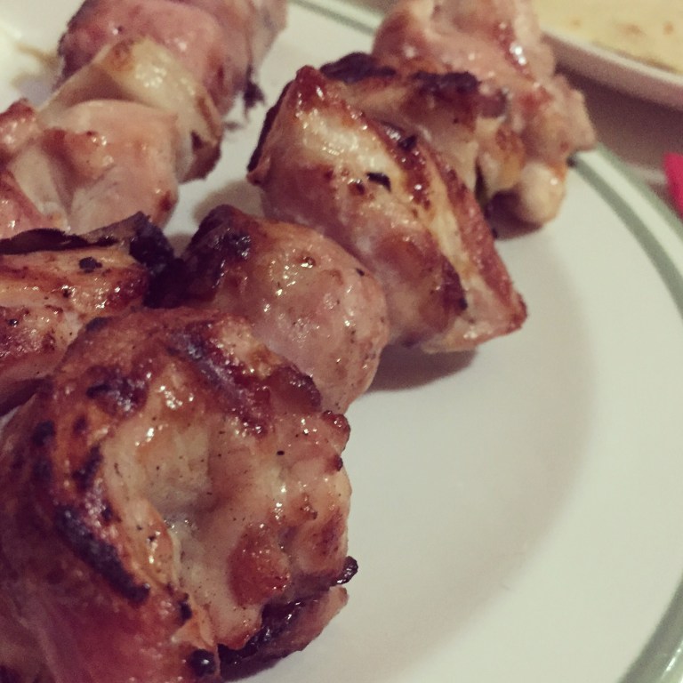 Eggplant and chicken skewer cooked in the barbecue…