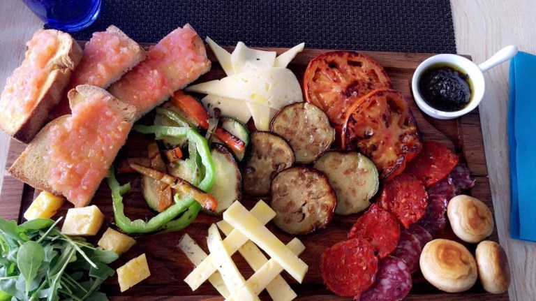 Grilled local vegetables, olive paste, local cheese from Maó and Mercadal, local salami and bread with tomato…