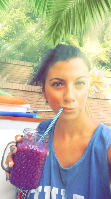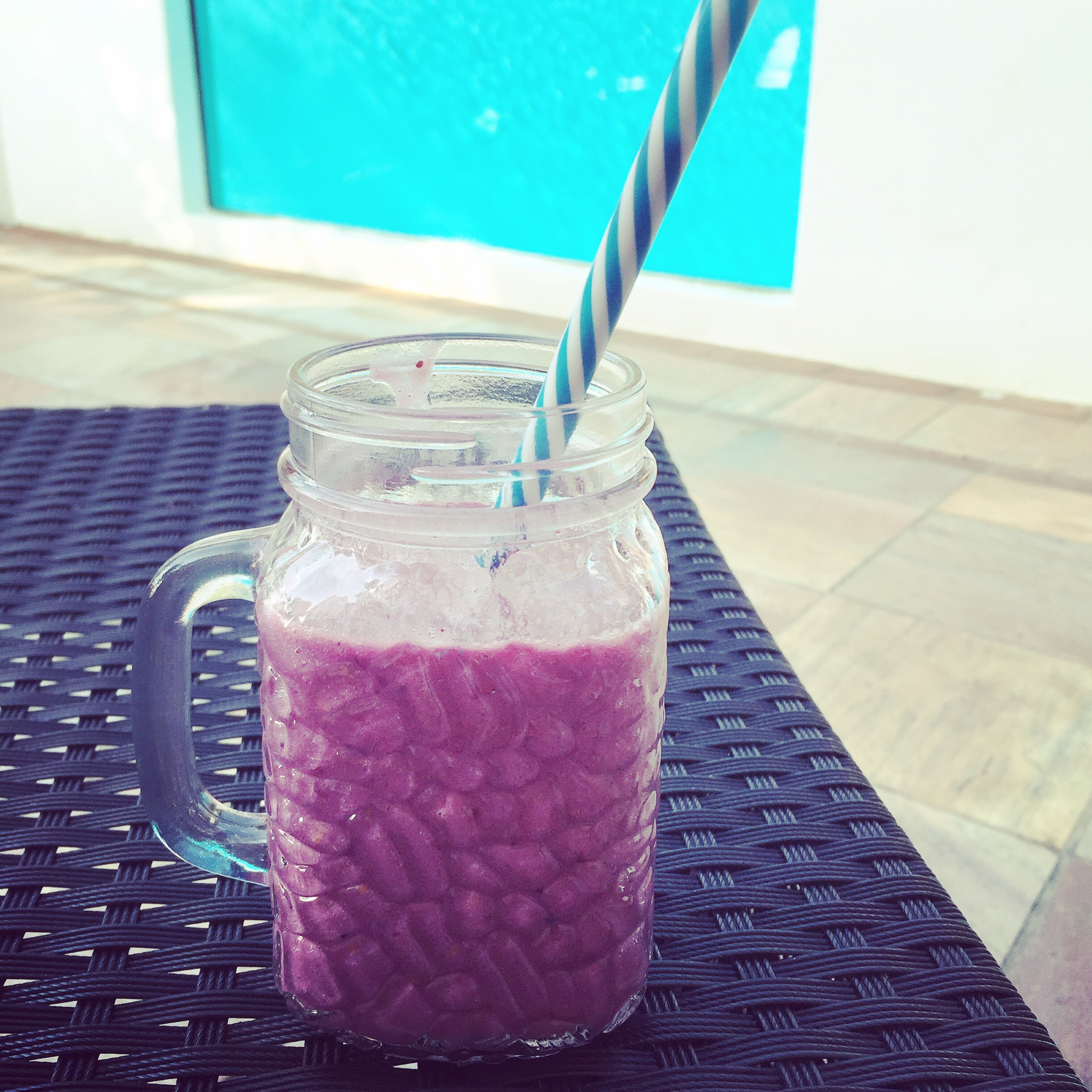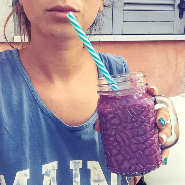 This morning I prepared myself a smoothie with soy strawberry yogurt and fresh blackberries…