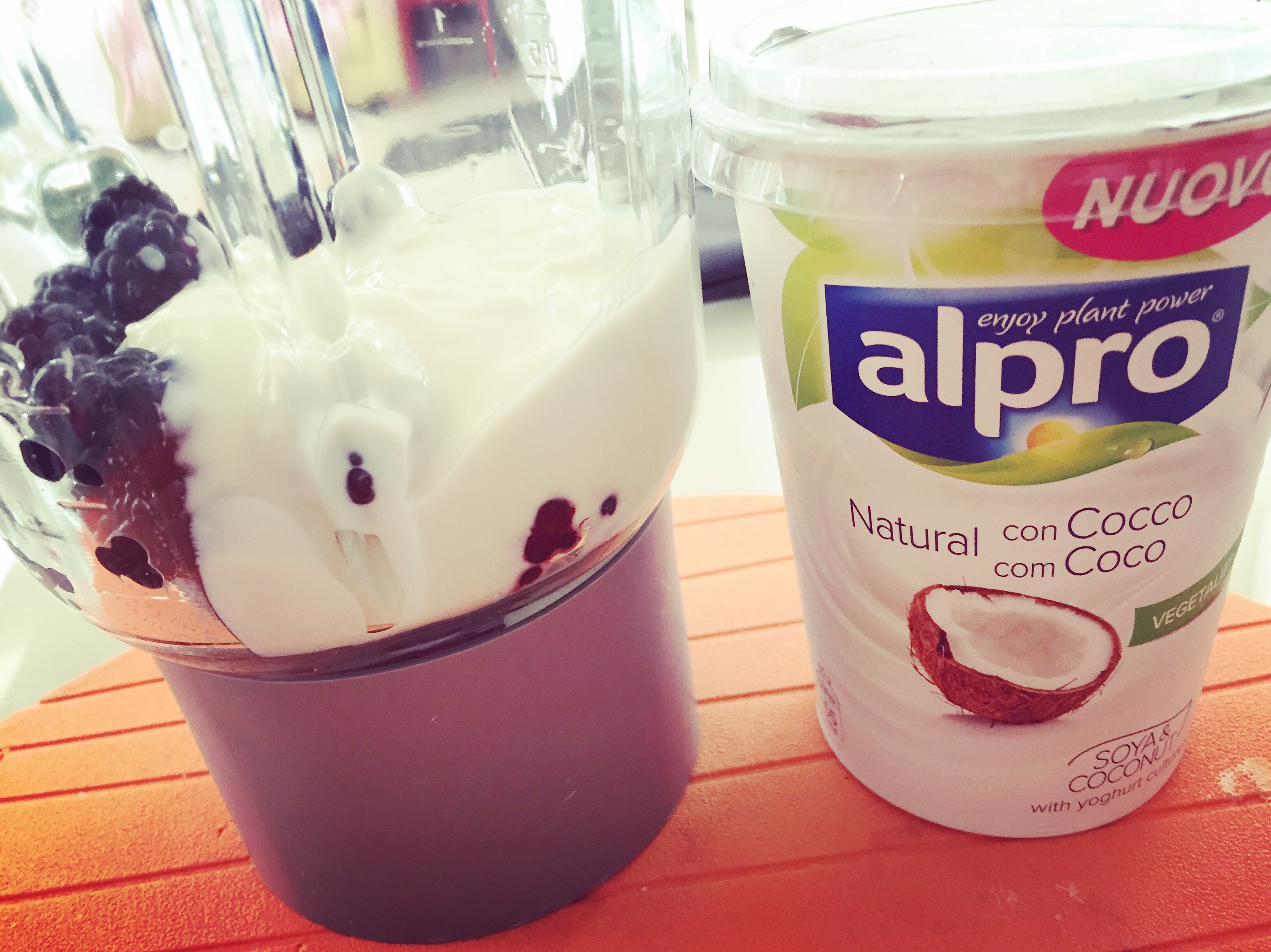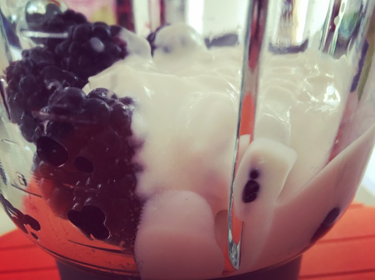 Today I used my coconut yogurt for my smoothie and I combined it with blackberries… a delicious mix…