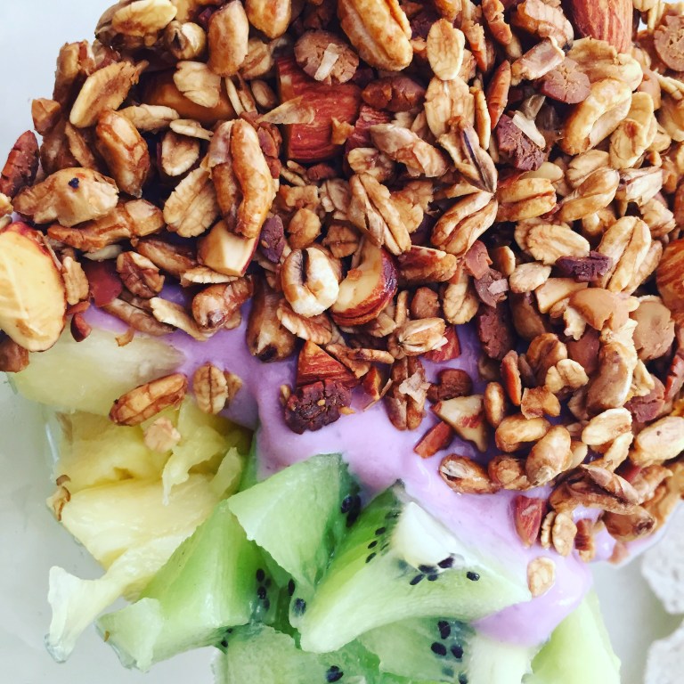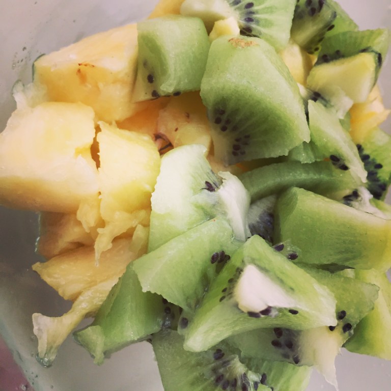 Fruit bowl with pineapple and kiwi… To give a sweet taste I decided to use mixed berries low fat yogurt…