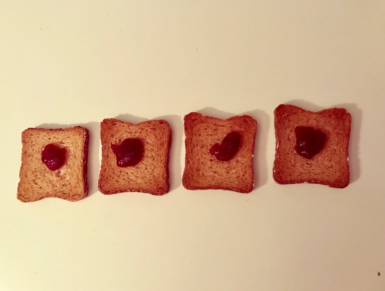 Remember not to exaggerate with the jam… I used two small spoons for 4 melba toast…