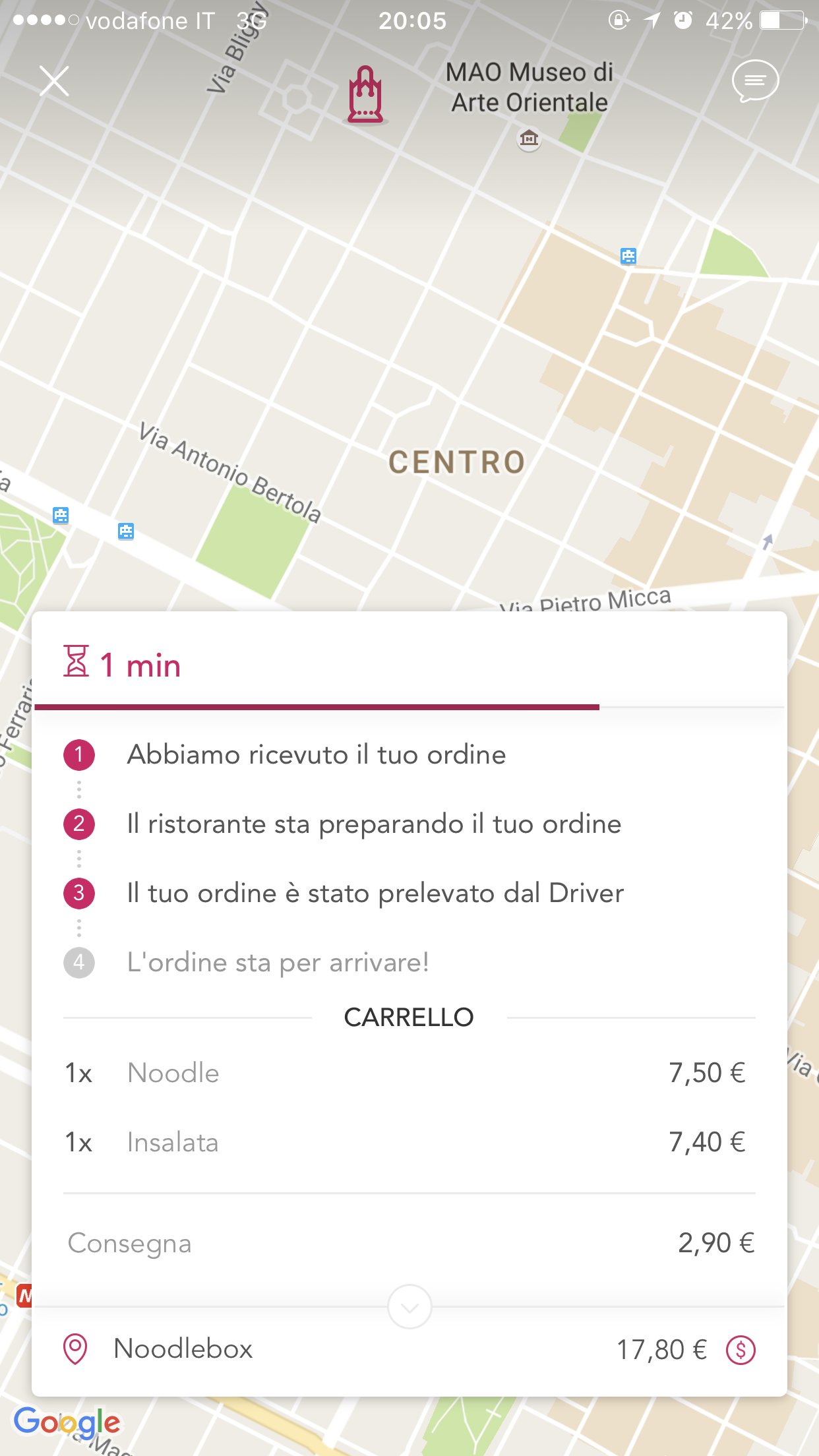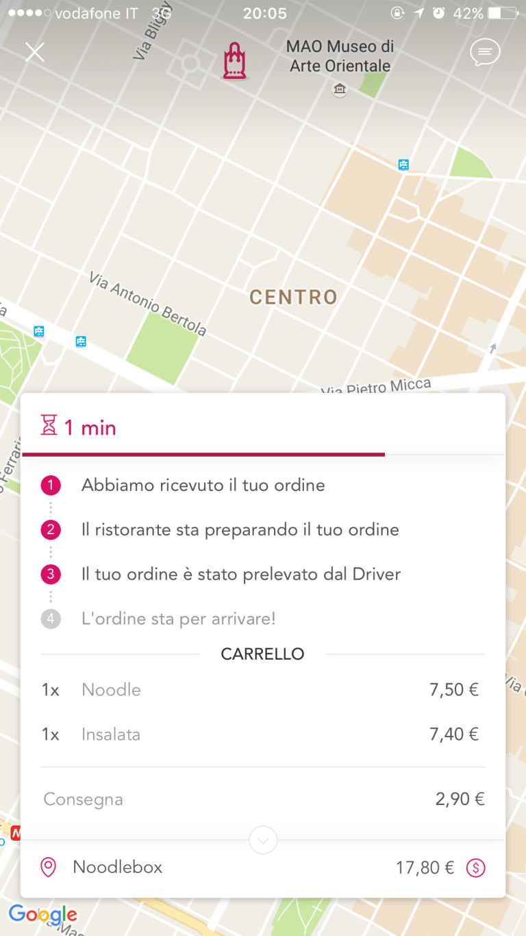 Ciò che mi piace di quest’app che ti dice esattamente quando ricevono il tuo ordine, quando il ristorante lo sta preparando, quando il Driver il ritira l’ordine dal ristorante e quando sta per arrivare…Cosa vogliamo di più?