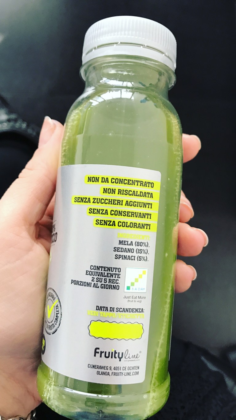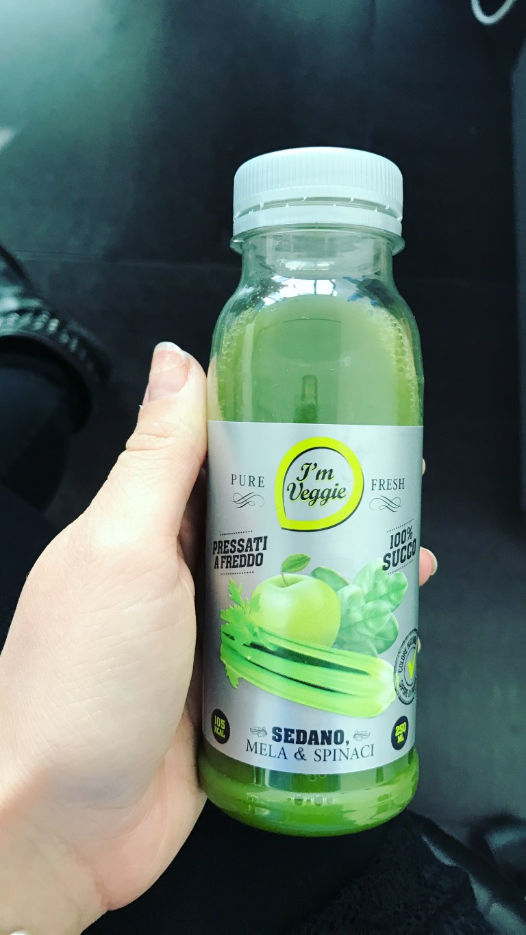 Oggi come snack una bevanda a base di mela, sedano e spinaci… un pressato freddo, 100% succo di verdura… non il classico succo…