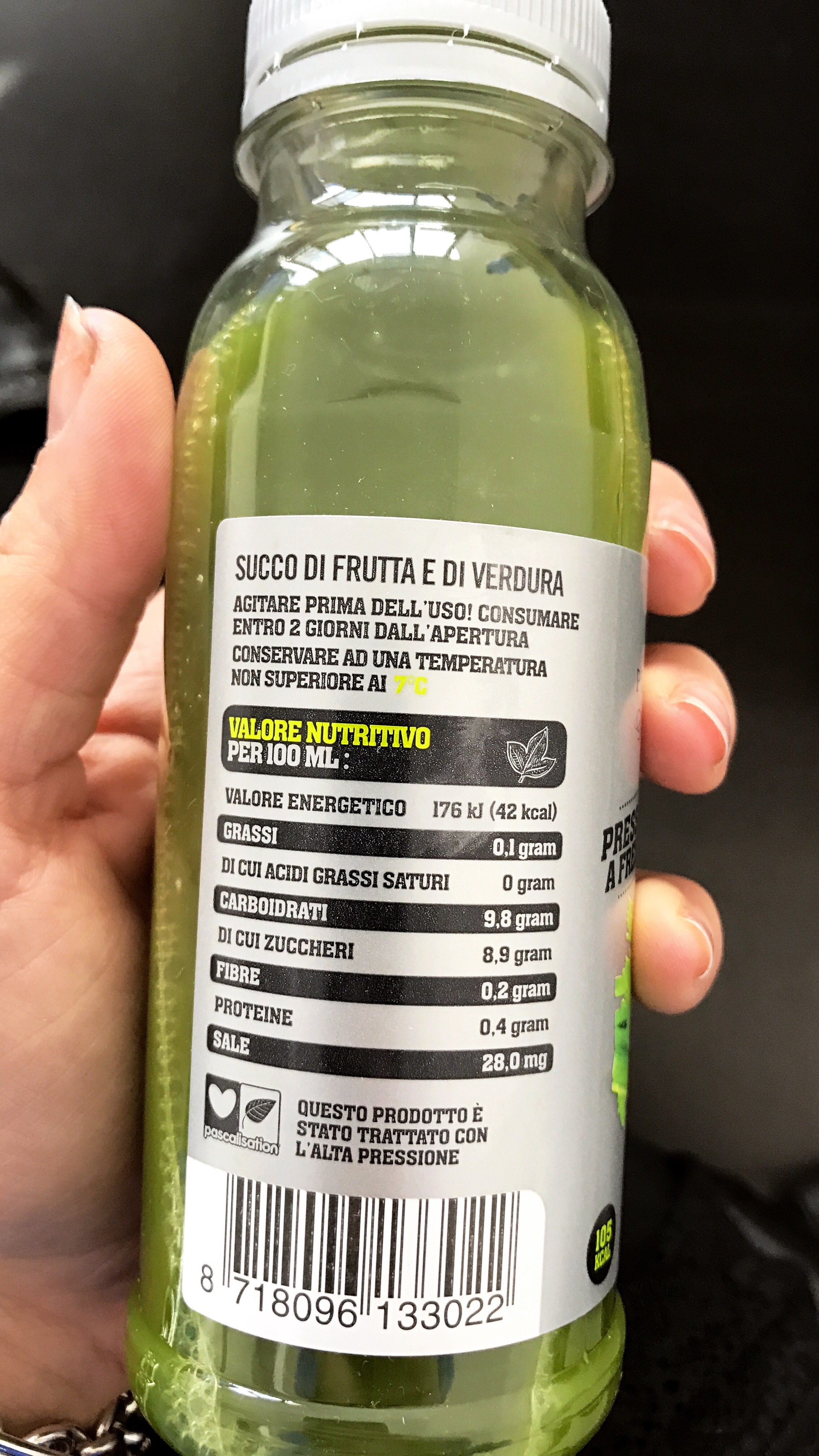 Oggi come snack una bevanda a base di mela, sedano e spinaci… un pressato freddo, 100% succo di verdura… non il classico succo…