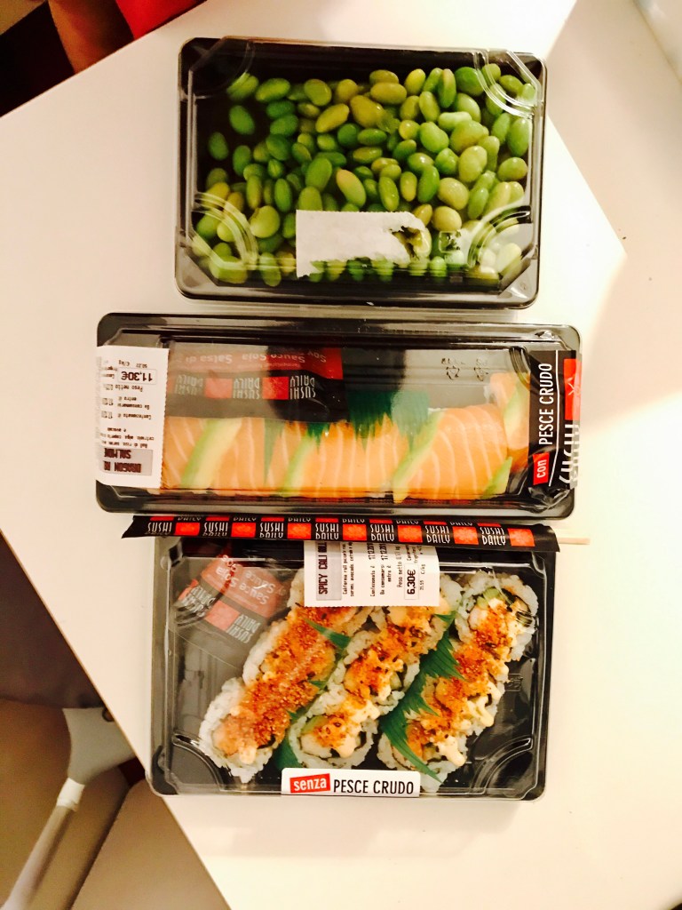 La mia parte preferita dei nuovi Carrefour è l’area Sushi… un vero e proprio ristorantino che prepara il sushi, lo confeziona ed è pronto per essere comprato e mangiato…