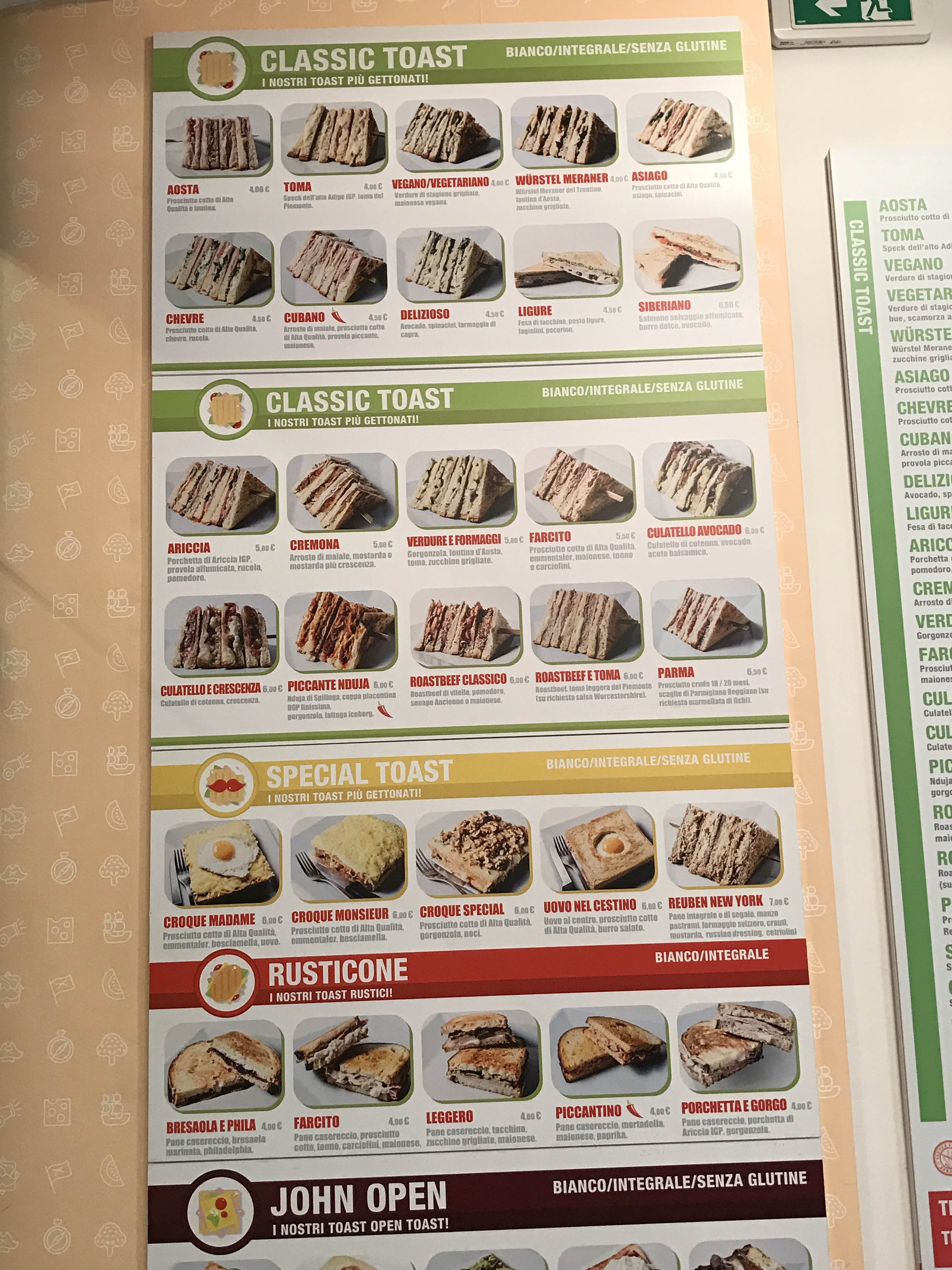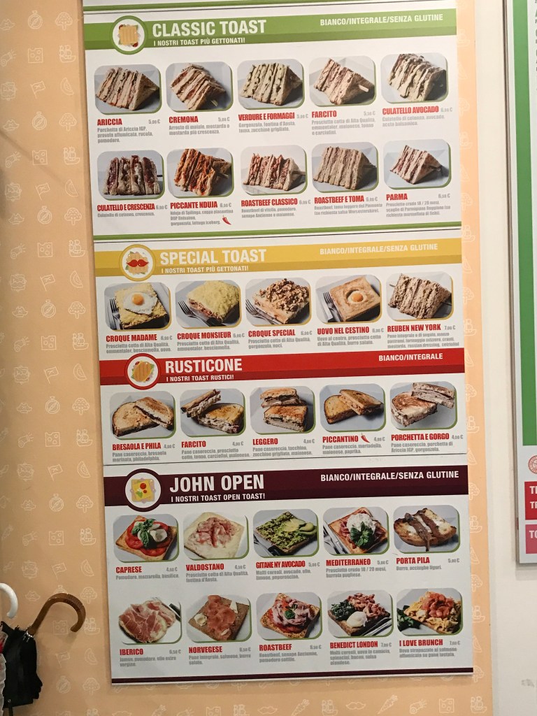 Il menu è molto vario, offre dei toast classici, special, open toast fino al rusticone… Un menu veramente vasto che avrete l’imbarazzo della scelta, sono tutti ispirevoli…