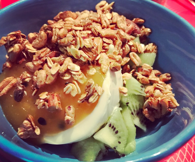 Il mio yogurt preferito è al frutto della passione…aggiungete due kiwi e della homemade granola, per una colazione top…
