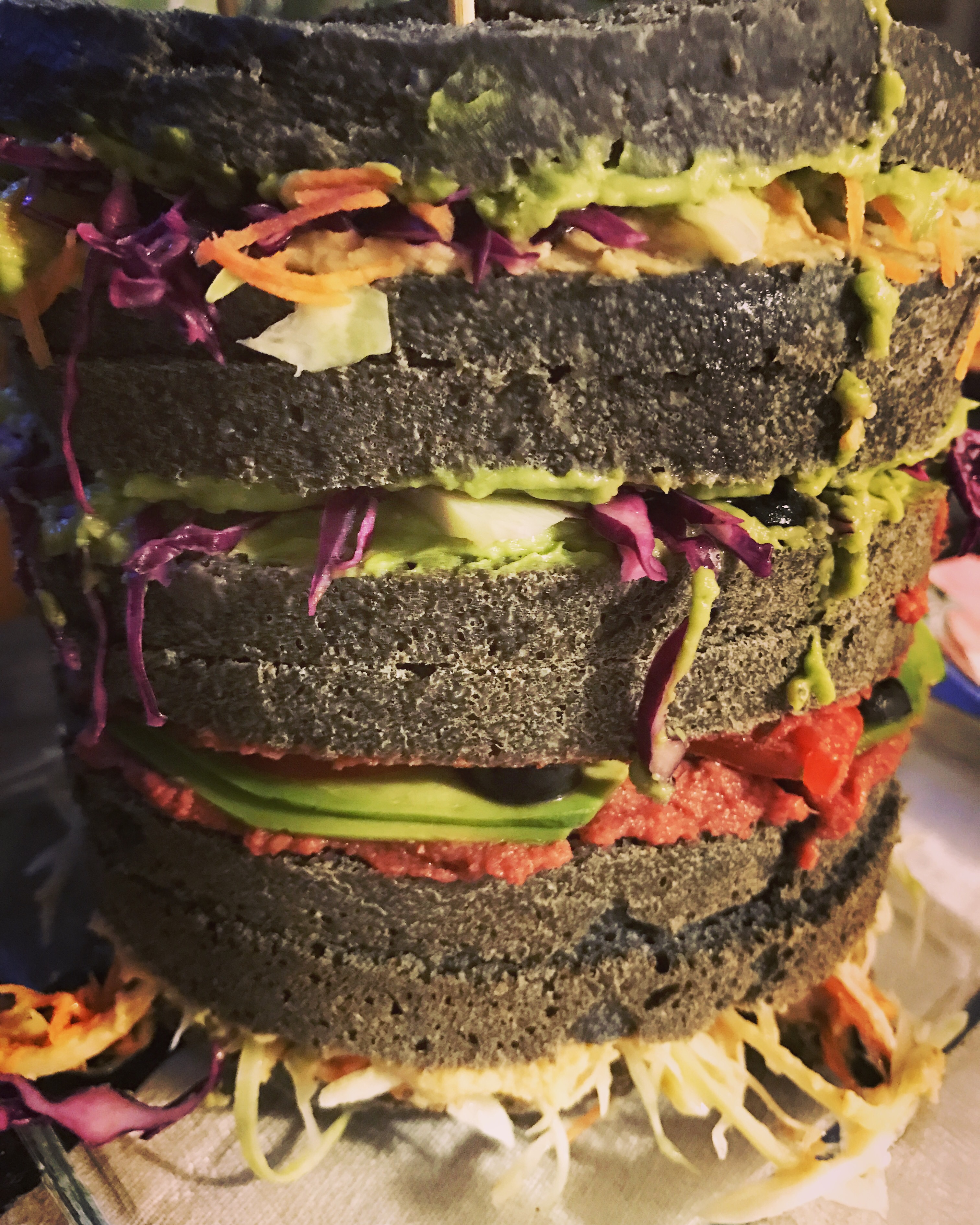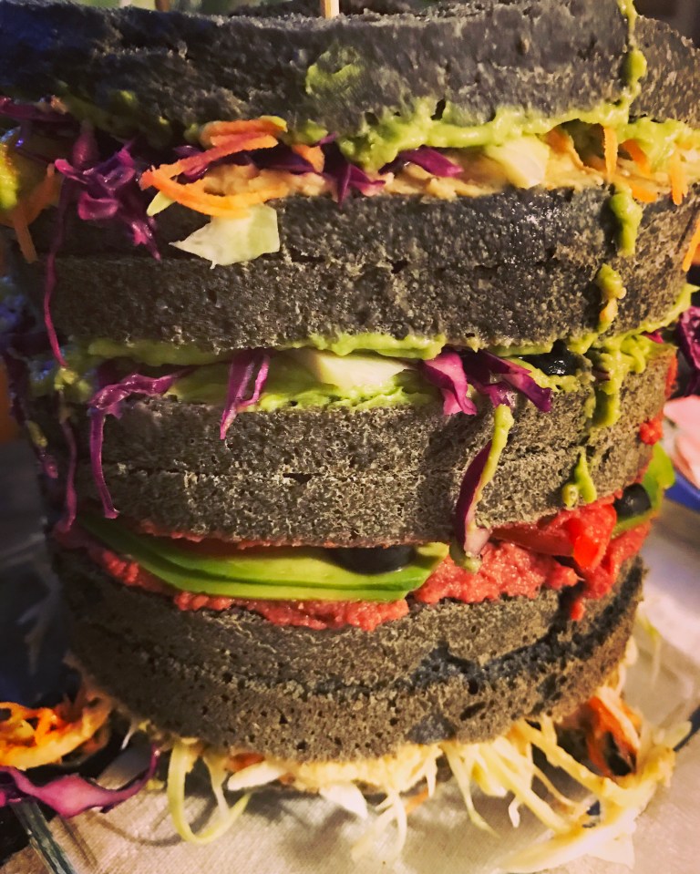 Veggy Pan brioche ripieno di insalata di verza, humus e avocado, barbabietola e avocado, hummus e olive…