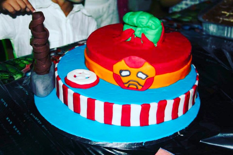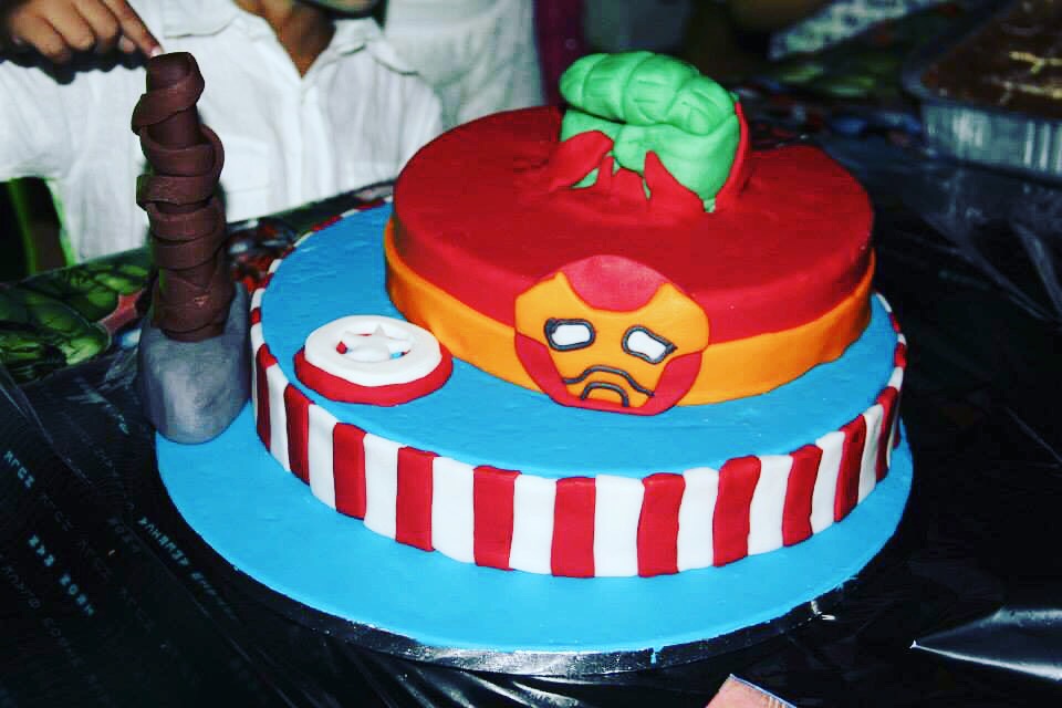 Avengers Cake: torta pan di spagna classico, farcita con crema pasticcera e ricoperta da pasta di zucchero