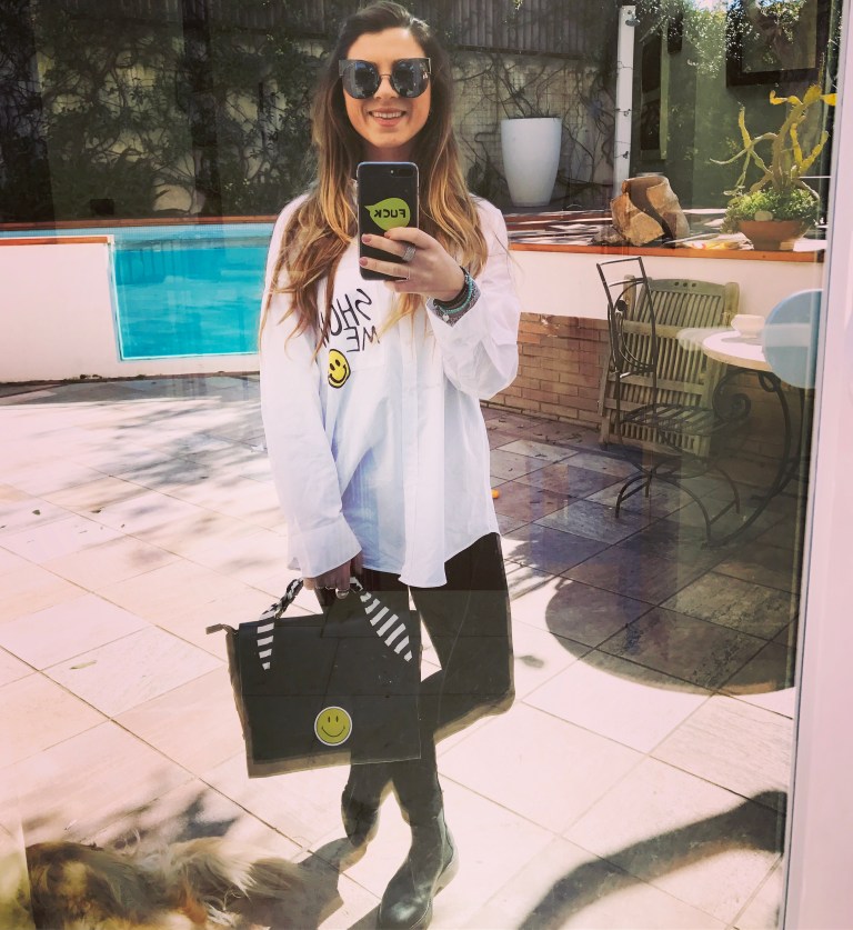 17 March 201711 March 2017Keep On Smiling Scroll down to content Start the weekend with a Smile… enjoy your day… Smiling Outfit: Camicia “show me your smile” by ZARA Legging con inserti in pelle by ZARA Borsa “smile” by ZARA Occhiali da sole by FENDI ————— #beyourmotivation10 Find me on instagram: gaia_trocchia Share this: Click to share on X (Opens in new window) X Click to share on Facebook (Opens in new window) Facebook Click to share on LinkedIn (Opens in new window) LinkedIn Click to email a link to a friend (Opens in new window) Email Like Loading... Published by gaia_trocchia Gaia. 20 anni. Roma Amo lo sport mi fa sentire libera e spensierata. Amo seguire un stile di vita sano. Amo viaggiare, chi viaggia vive due volte... Il mio motto è Be your motivation View all posts by gaia_trocchia