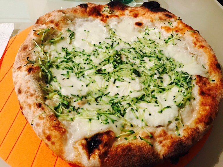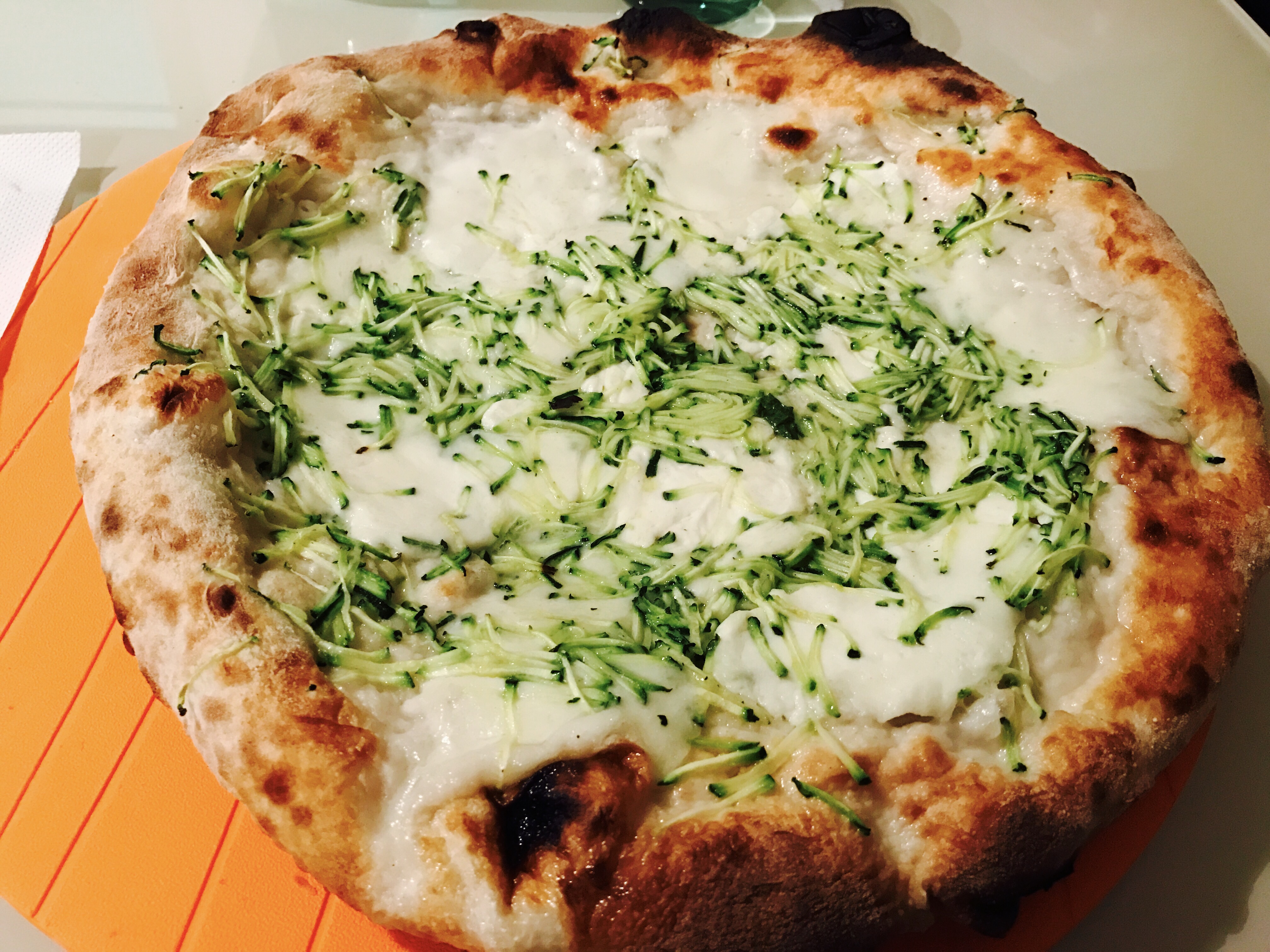 Pizza bianca con mozzarella di bufala e zucchine alla julienne (croccante come da me richiesta)