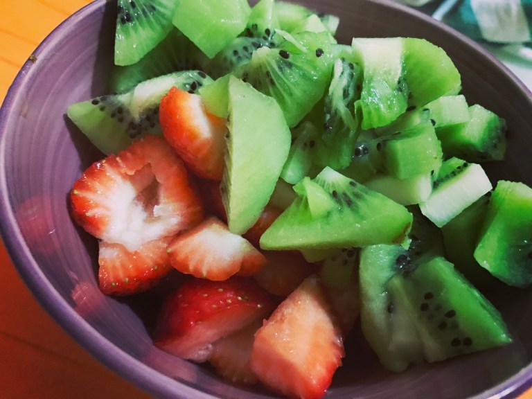 Iniziamo la giornata con un mix perfetto… fragole e kiwi… sweet and acid…