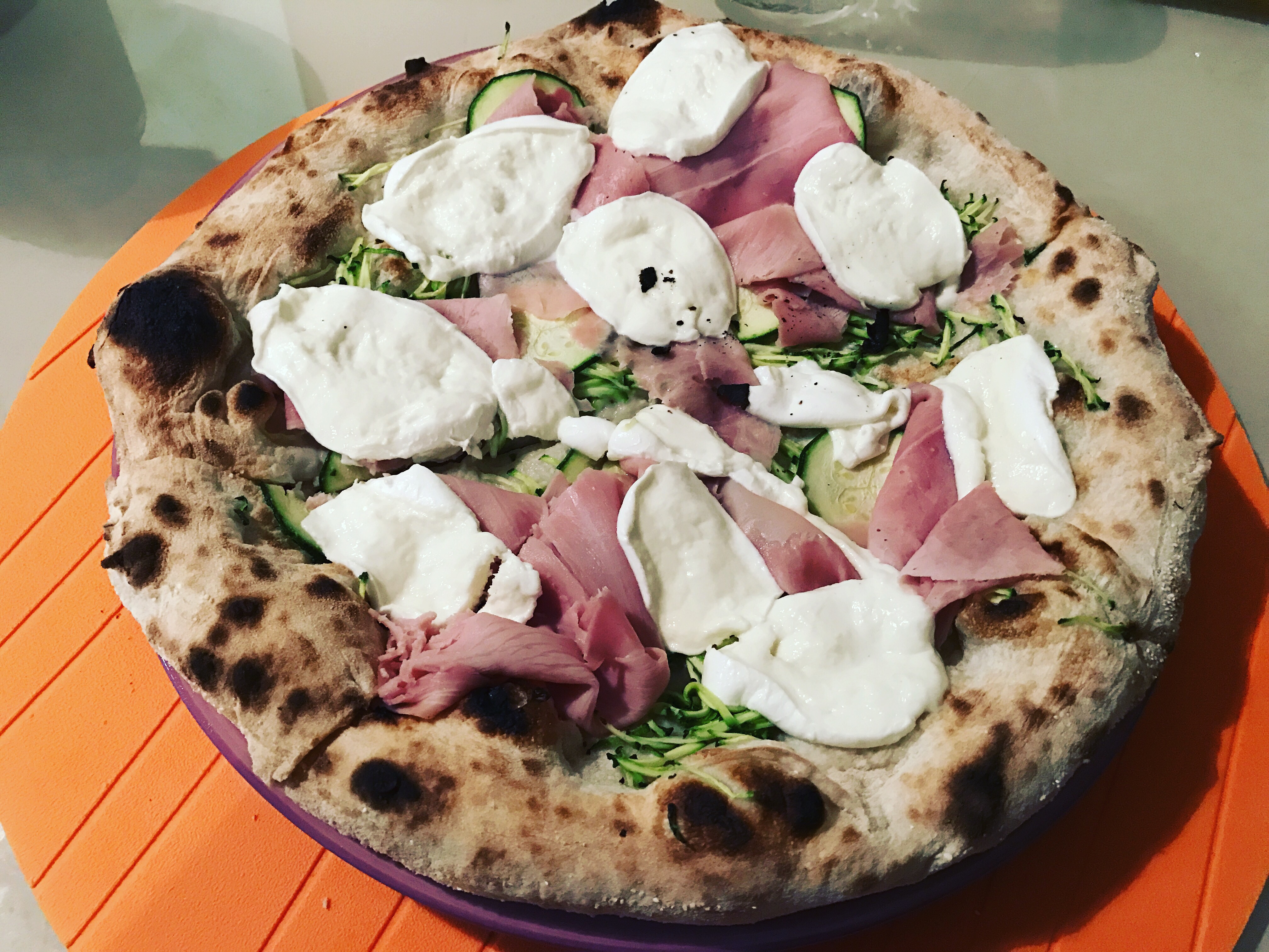 Focaccia bianca con zucchine e bufala e prosciutto cotto a crudo