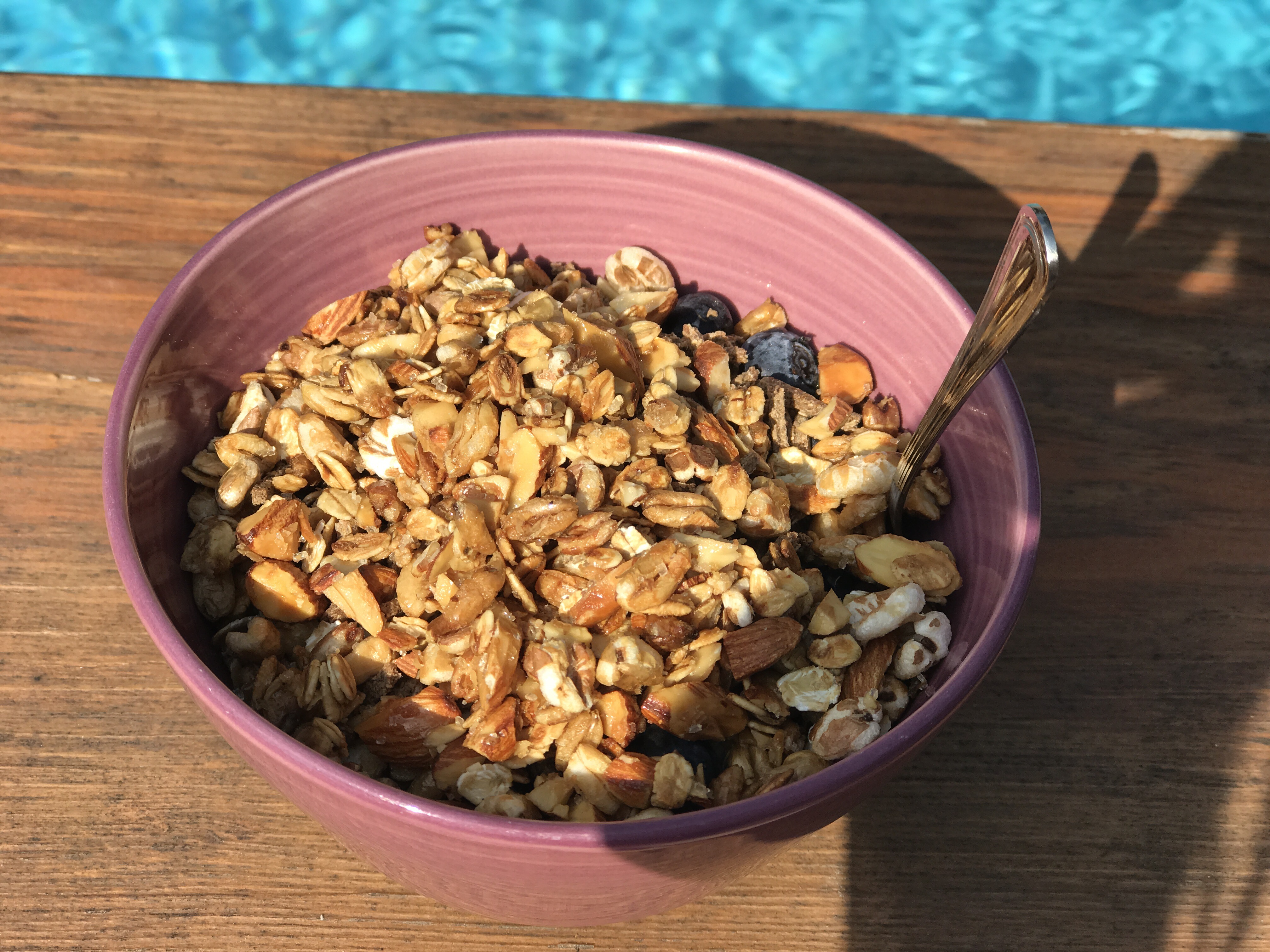 Here is mine: My breakfast consists in blueberries, blackberries, low fat yogurt and homemade granola…