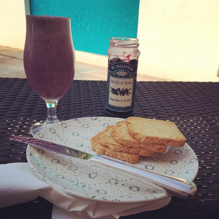 Smoothie, melba toast and jam…