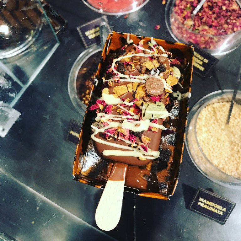 Go and try this delicious Personalized Magnum… make your Magnum as you desire, black or white and add any extra topping, nuts, caramel, pistachios, marshmallows, meringue and many more… enjoy every bit of it, you will fall in love as soon as you will bite that delicious crunchy chocolate…