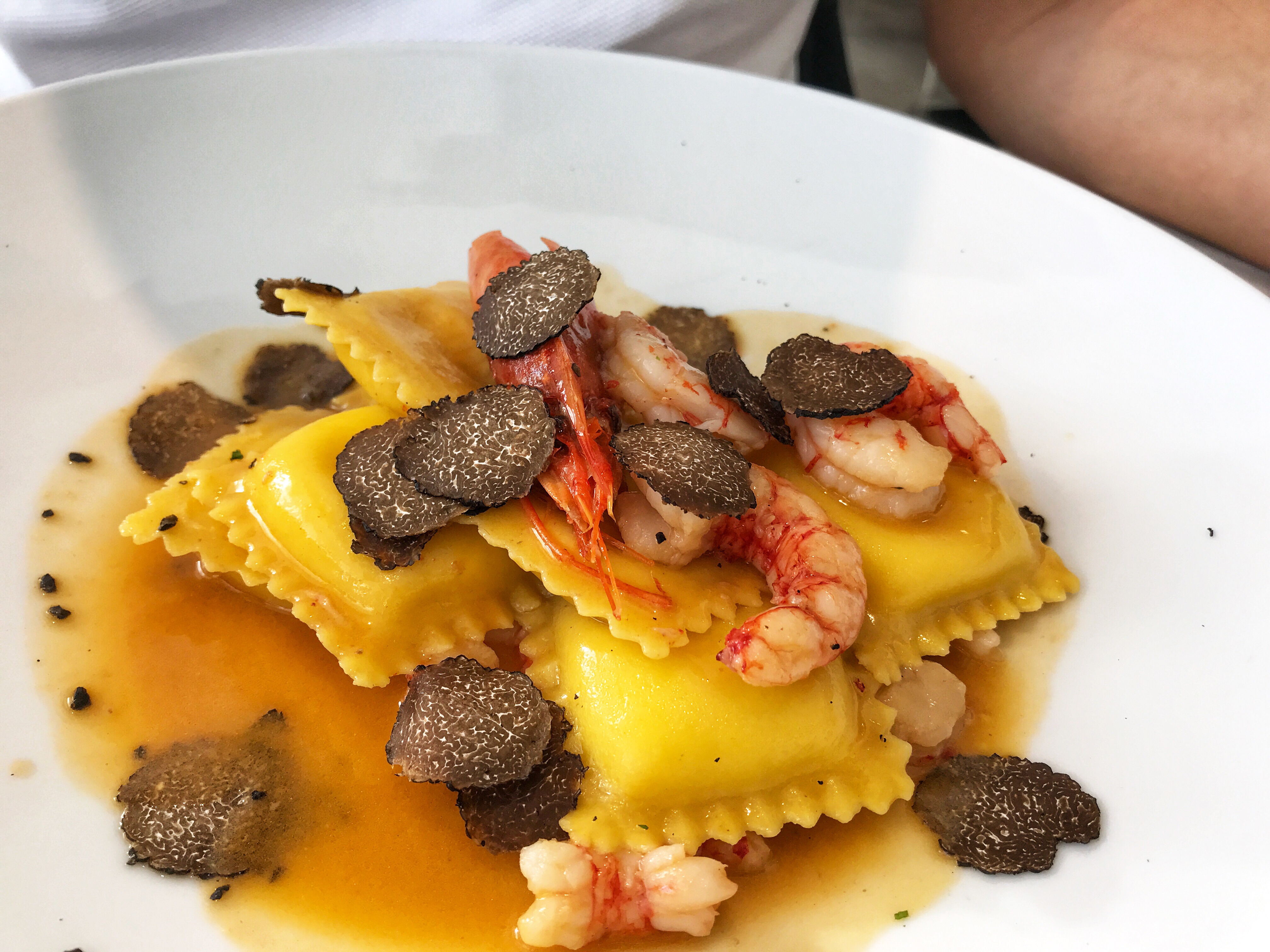 Ravioli with cheese, shrimps and truffle
