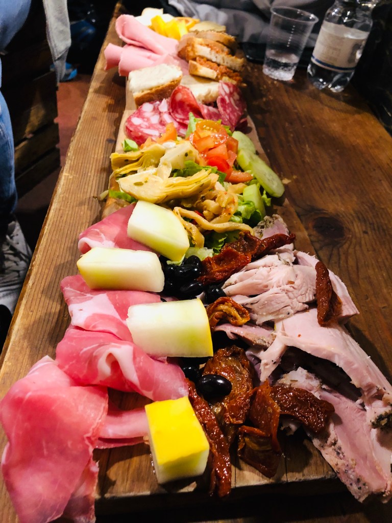 While traveling around Italy, don’t forget to enjoy Italy’s taglieri, it’s an Italian food tradition to enjoy prosciutto, salami, cheese, combined to veggies served on a wooden plate…
