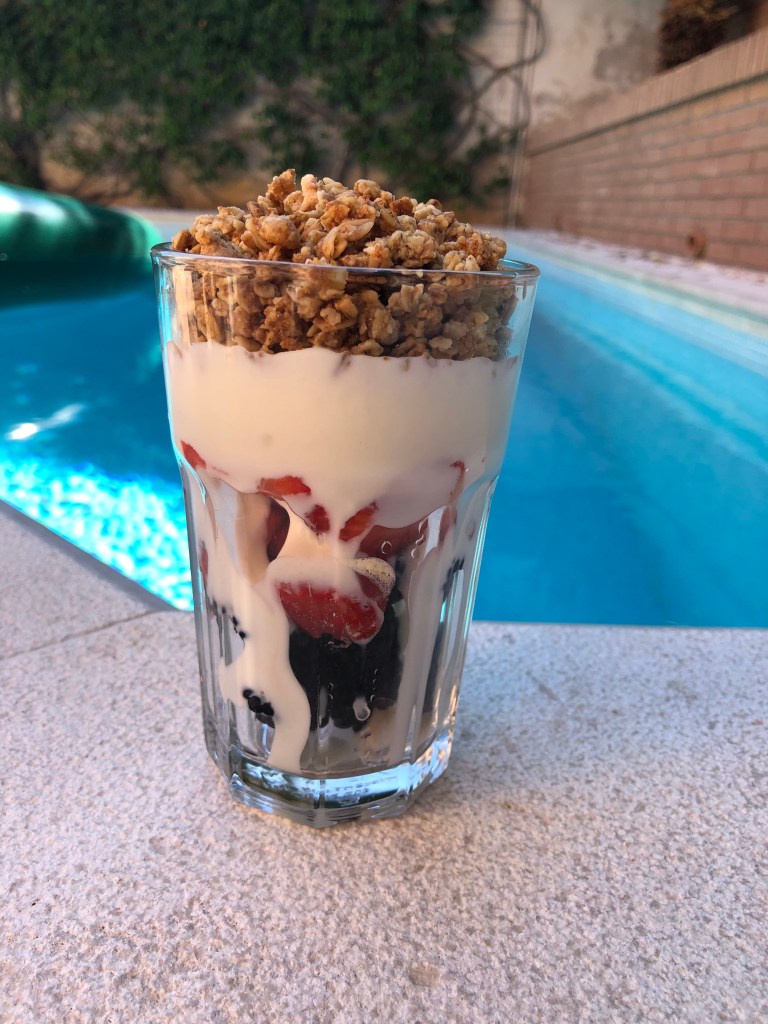 Here is my creation of the day, blackberries, strawberries, yogurt and muesli.