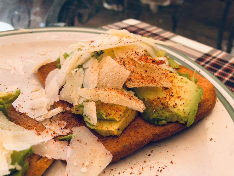 No time to cook, no time to eat so here is my creation… avocado, parmigiano cheese and spices.
