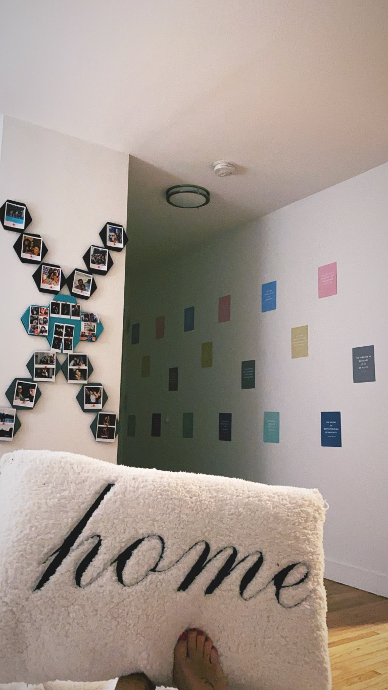 I used colored cardboards to decorate my entrance wall. On the cardboards there are different quotes and I used different colors in order to give some happy tone to my house.