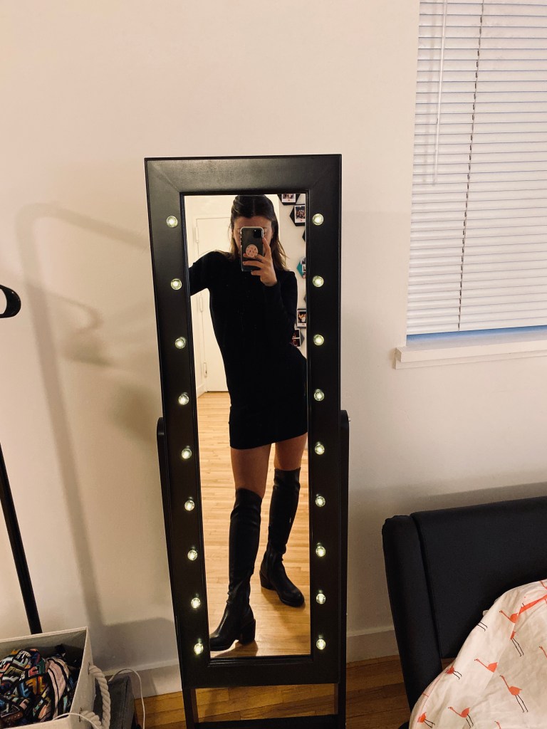 This is one of my favorite items I bought on amazon! It is not just a simple mirror, inside you can nicely place all your jewelry and sunglasses.