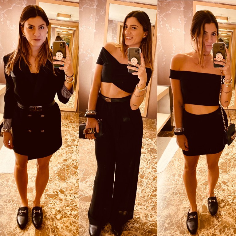 Third outfit is also a total black outfit but this time it is a short dress also by Revolve! Once again simple outfit, so it is important to play around with accessories. Bag and chocker by Dior, earnings by Elisabetta Franchi.