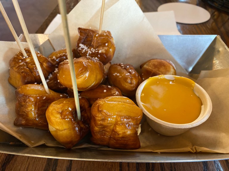 One of my favorite appetizers, mini pretzels with melted cheddar cheese!